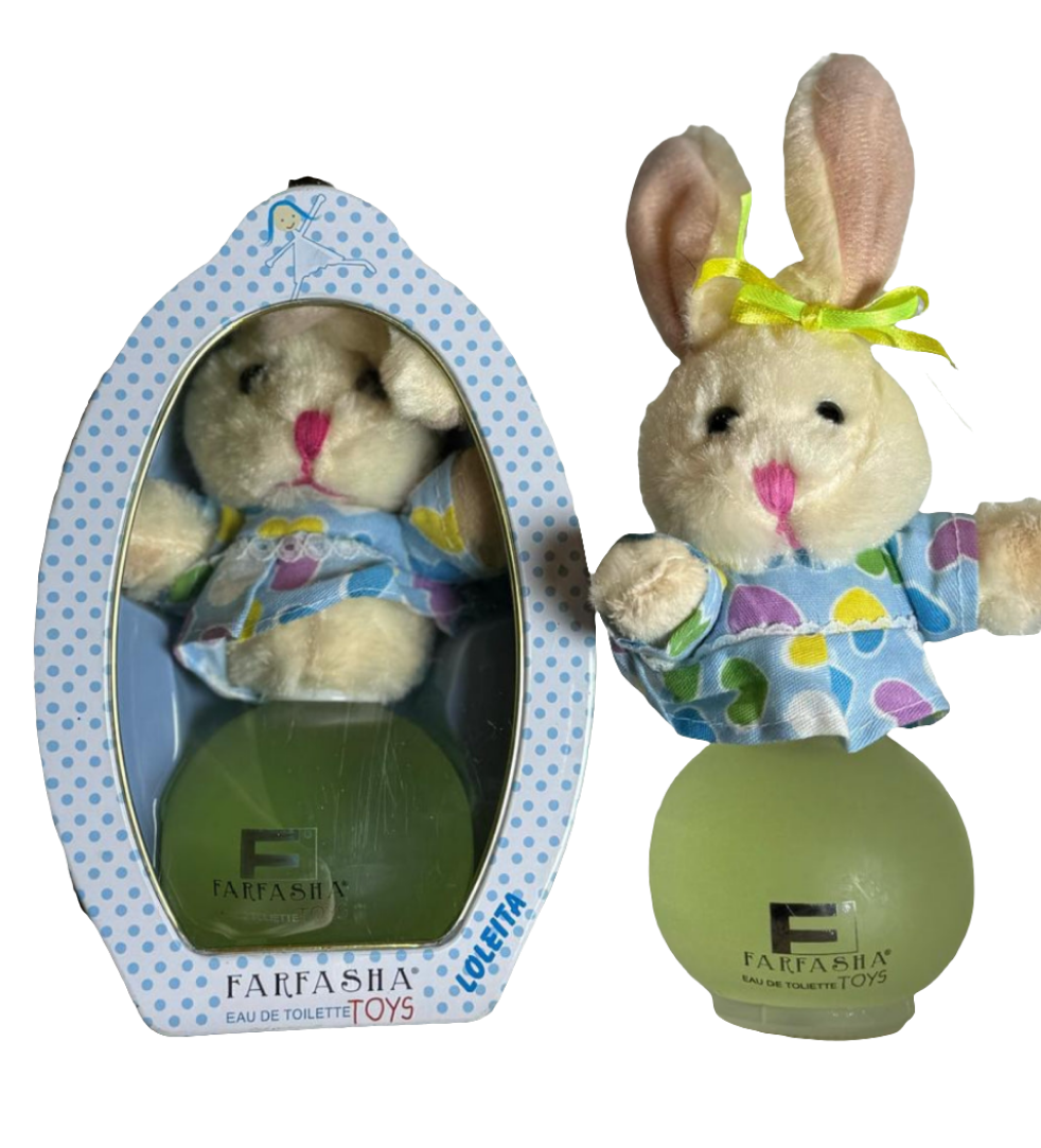 Farfasha Toys Loleta Eau de Toilette comes in a playful design with a plush bunny topper, blending fun and fragrance in one. A sweet, light scent perfect for kids and collectors.