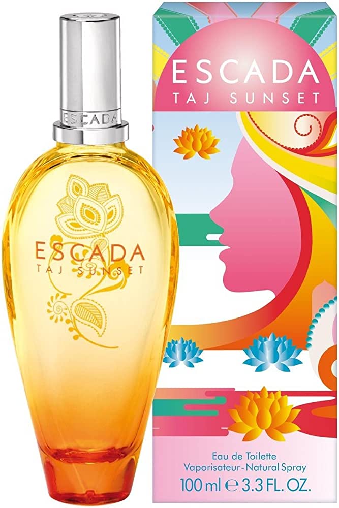 Escada Taj Sunset is a women's fragrance from the luxury fashion brand Escada. It features top notes of bergamot and mandarin, heart notes of rose and jasmine, and base notes of sandalwood and amber. This scent has a warm, sweet, and feminine character. It is perfect for daytime or evening wear.